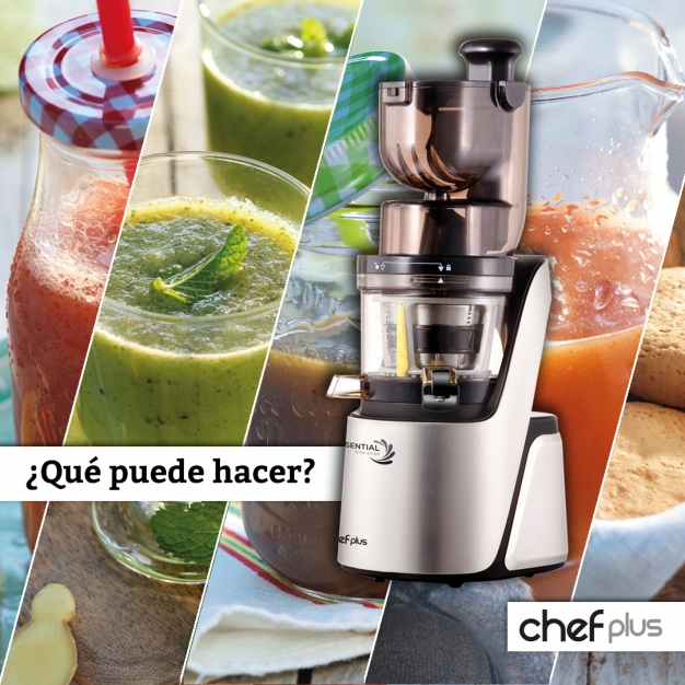 Chef Plus Essential es el extractor de zumos más revolucionario del mercado. Gracias a su tecnología de prensado en frío, podrás elaborar las recetas más saludables y sabrosas.