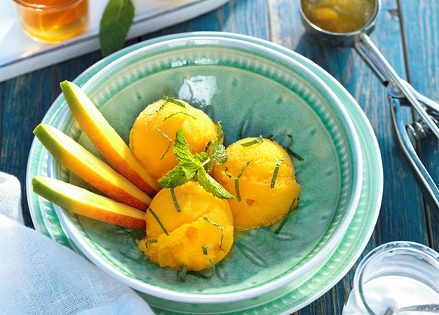 - Pelar y deshuesar el mango, trocearlo y pasarlo a continuación por la Chef Plus Essential con el filtro grueso.