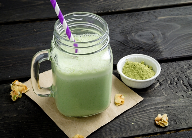 Zumo de lima con té matcha y coco