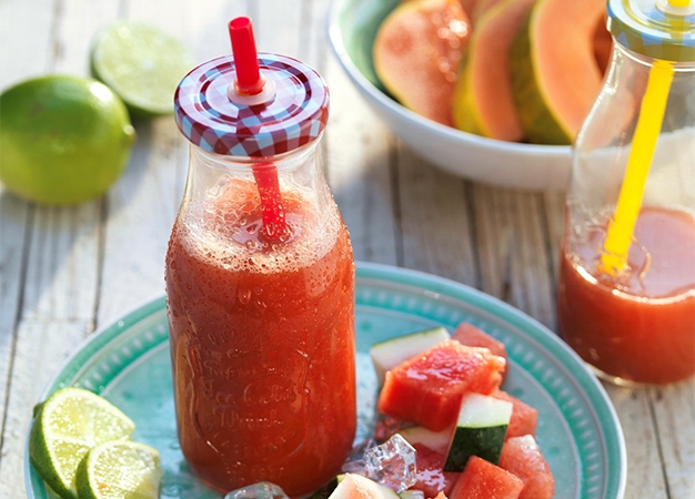 - Pelar la lima, la sandía y la papaya. Lavar la lechuga.