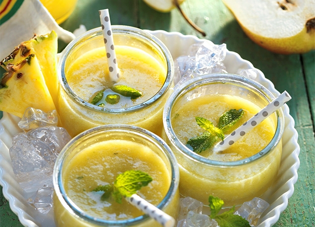 - Lavar la menta, la fruta y la verdura y pelar la piña.