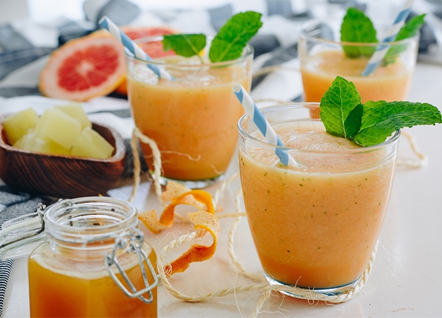 1. Pelar, eliminar semillas y cortar la manzana, el melón, el pomelo y el pepino.