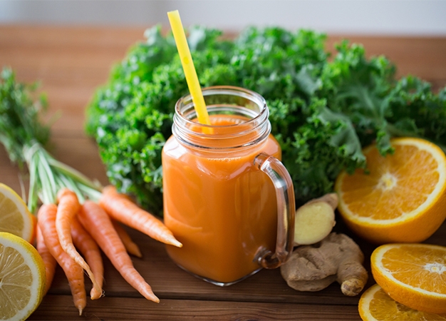 1. Pelar y cortar las zanahorias, el limón, las naranjas y el jengibre.