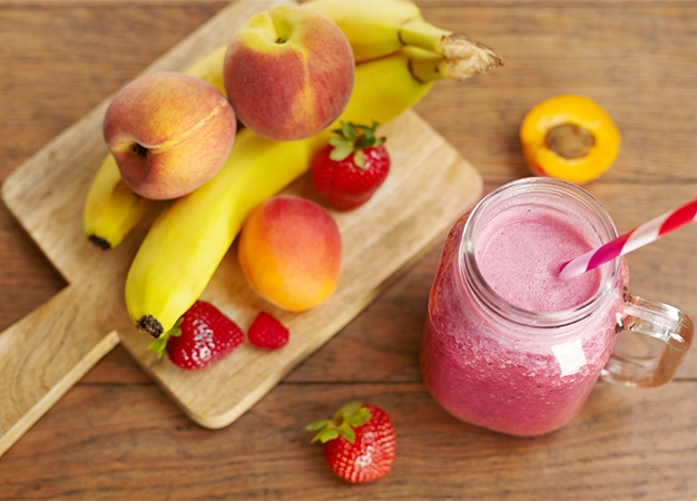 1. Lavar y trocear los melocotones, las fresas y las zanahorias.