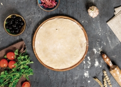 3. A continuación, vierta todo el aceite lentamente pero de forma constante por el orificio superior. Cuando acabe, abra la tapa y compruebe que la textura de la masa sea correcta. Deposite la masa sobre la mesa previamente enharinada, divídala en dos bolas y déjelas reposar en la nevera durante una hora antes de extenderlas y formar las bases de pizza. Para un mejor resultado, hornee sobre una bandeja especial para pizza.