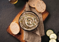 3. Ahora coloque la cuchilla metálica en el bol, vierta la berenjena y el ajo, añada el tomillo, y corrija de sal y pimienta al gusto.