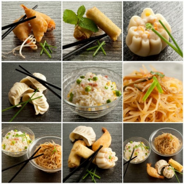 Entre la gran cantidad de platos típicos de la gastronomía china y japonesa destacan: