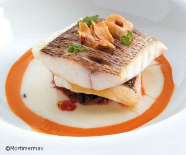 • Después del tiempo necesario… ¡Listo! Sirve el pescado sobre el pisto y decóralo con menta y perejil picado.