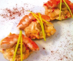 - Cuando la masa de los canapés esté fría, úntelos con la crema y decórelos con una cola de langostino.