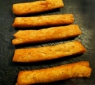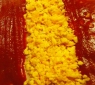 - Mientras se hornean, elabore el relleno cortando los palitos de cangrejo y el huevo duro en daditos.