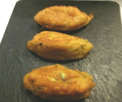 - Amase un poco y forme bolas alargadas. Rebócelas con harina, huevo batido y pan rallado, por este orden.