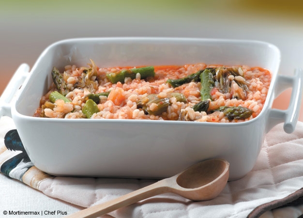 - Ralle el tomate y mézclelo con la ñora; limpie las alcachofas y córtelas en 4 trozos; corte los espárragos en trozos de unos 3 centímetros.