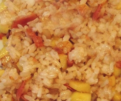 - Introduzca todos los ingredientes en la cubeta, remueva a conciencia, cierre la tapa y programe el menú Arroz.