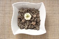 - Añadimos el resto de ingredientes: Agua, arroz, 2 sobres de tinta, pastilla de caldo de pescado, aceite. Programamos el menú arroz. Servir acompañado de salsa ali-oli.