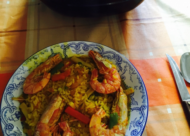 - . Introducir en la cubeta los ingredientes por este orden: el aceite, los tomates, los pimientos, los calamares, las gambas, el arroz, el agua, el pimentón, el azafrán en sobre, el majado y el vino.