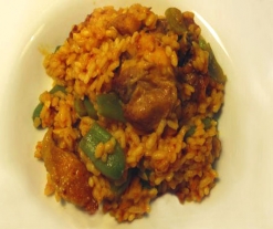 - Trocee el pollo y el conejo; pique el ajo muy fino.