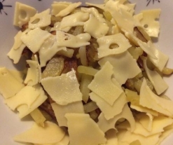 - Mientras tanto, partimos las lonchas de emmental en trozos pequeñitos.