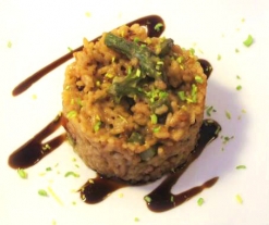- Reserve la nata, el perejil y el queso e introduzca el resto de ingredientes en la cubeta. Mezcle, cierre la tapa y programe el menú Arroz.