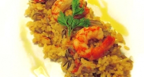 Arroz meloso con setas y langostinos