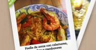 Paella de arroz con calamares, gambas y gambones