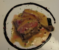 - Deseche la grasa que hayan desprendido las pechugas y sofría 5 minutos la escalonia, la mantequilla y la pimienta rosa.