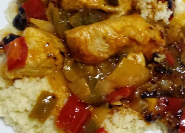 7. Desmenuzamos con los dedos, y servimos el cuscús con el pavo en salsa por encima. (Otra opción es hacer el cuscus en cocina convencional mientras la chefplus termina los últimos cinco minutos de cocinado del pavo, así no hay que esperar).