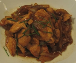 - En el mismo aceite, sofría el ajo y la cebolla y, cuando estén dorados, vuelva a incorporar el pollo, añada la soja y el agua. Remueva hasta que finalice el programa.