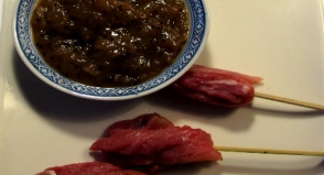 Falso canelón de pato a las 5 especias con salsa de ciruelas