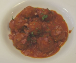 - Retire el aceite de la cubeta e introduzca de nuevo las albóndigas junto con el resto de ingredientes. No añada sal, ya que el jamón serrano incorpora suficiente sal al plato.