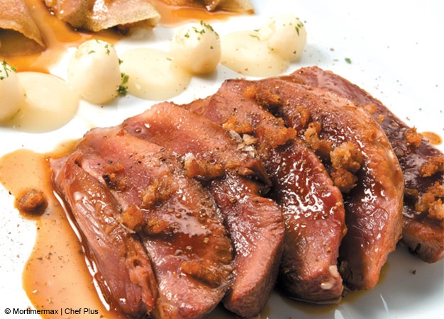 - En una fuente, coloque el solomillo sobre las patatas. Sirva la salsa aparte para que la costra no se reblandezca.