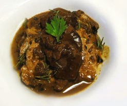 - Pele las patatas y las escalonias. Corte las patatas en rodajas de 3 centímetros de grosor y las escalonias por la mitad. Salpimiente la carne.