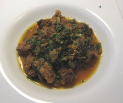 - Introduzca la mantequilla, la cebolla, el cordero, las espinacas, las pasas y el yogur en la cubeta. Cuele el jugo de maceración, disuelva la maicena en él y agréguelo a la cubeta junto con una pizca de sal.