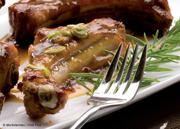 - Con la tapa abierta, programe el menú Freír/Sofreír a 151º durante 20 minutos. Al terminar, retire las costillas, ponga el resto de ingredientes en otro recipiente y tritúrelos. Sirva las costillas cubiertas con esta salsa.