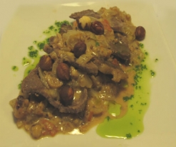 - Métalos en la cubeta de la Chef Plus Induction junto con el vino blanco, el tomate, la nata y las avellanas rotas. Añada una pizca de sal y la carne.