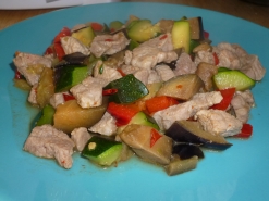 - Cortamos el calabacín y la berenjena en tacos y lo reservamos a parte.
