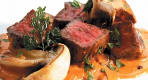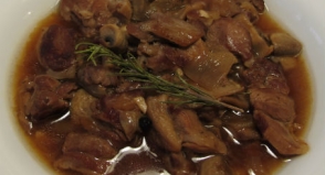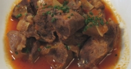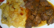Carrilla al moscatel con guarnición de patata y cebolla al horno de Estrella Carpallo Rodriguez