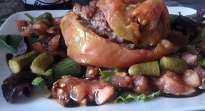Verduras salteadas al aroma moscatel chipionero, con churrasco de Estrella Carpallo
