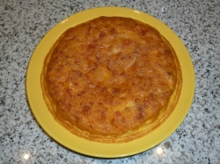 - Batimos bien los huevos, les incorporamos el jamón y volvemos a batir.