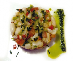 - Pique la cebolla, los pimientos y los tomates bien pequeños y añada a las alubias ya frías.