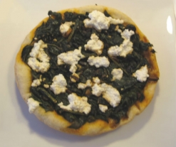 - Introduzca una masa en la cubeta. Disponga la mitad del sofrito de espinacas sobre ella y desmenuce la mitad del requesón por encima.