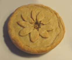 - Estire el resto de la masa y corte un círculo de unos 20 centímetros de diámetro. Cierre la empanada uniendo los bordes de las dos piezas de masa y haga un agujero en medio para que respire. Use la masa que sobre para decorar la superficie.