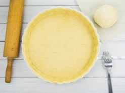 - Forre la cubeta con una de las dos mitades, disponga encima el relleno que vaya a utilizar y cúbralo con la otra mitad.