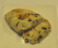 - Añada a la masa la mitad de la harina y toda la levadura desmenuzada. Mezcle, agregue el resto de la harina y las aceitunas y vuelva a mezclar.