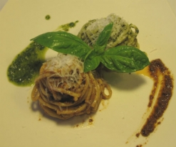 - Ponga la pasta con el agua en la cubeta y programe el menú Pasta. Cuando termine, cuele los espaguetis y divídalos en dos para añadirle a uno el pesto de albahaca y al otro el pesto de tomates secos.