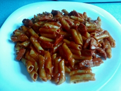 Programamos la Chef Plus Induction con el menú freír/sofreír 10 minutos,añadimos la mantequilla junto a la cebolla picada y las salchichas partidas,removemos y una vez finalizado el programa añadimos el resto de ingredientes,y seleccionamos el menú pasta.