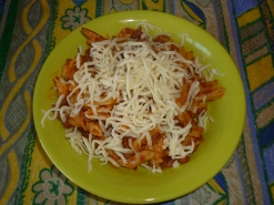 Poner todos los ingredientes en la cubeta a la vez (excepto el queso, que se pone al final) y programar el Menú Pasta.