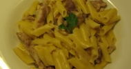 Macarrones con pavo y piñones
