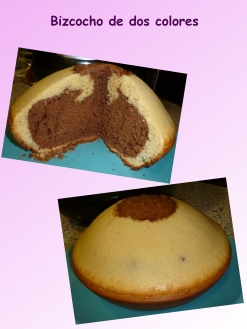 - Batimos todos los ingredientes (excepto el nesquik) con la ayuda de un túrmix. Engrasamos el fondo de la cubeta y vertemos la mitad de la mezcla. Añadimos el Nesquik a la mezcla restante y volvemos a batir bien.