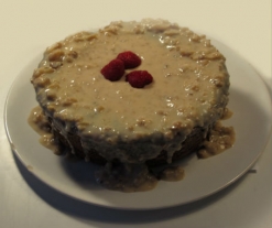 - Vierta la crema todavía caliente sobre el bizcocho y si lo desea, decore con unas nueces enteras.