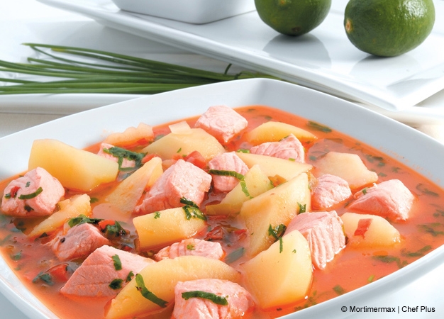 - Al terminar la cocción, abra la tapa, incorpore el salmón y deje reposar el conjunto durante 10 minutos. El calor de la cubeta bastará para que el pescado se cueza sin que quede seco.